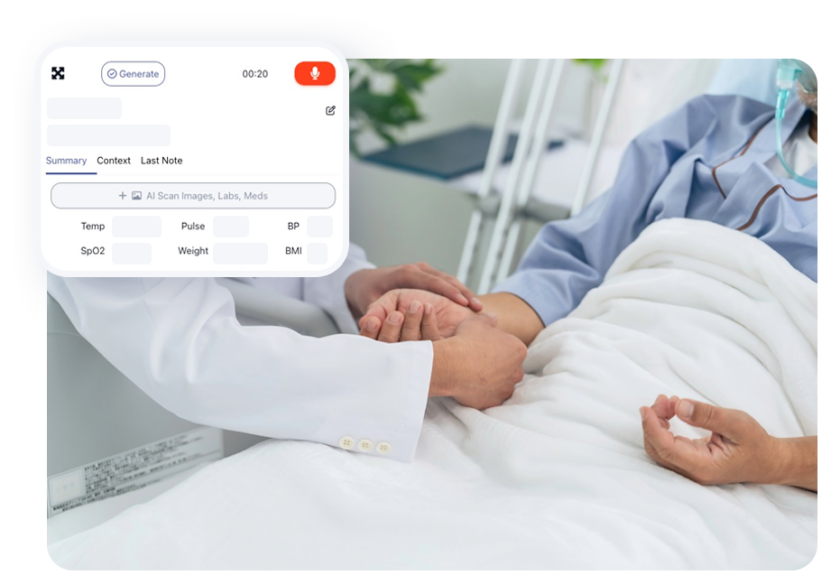 Purpose-built for hospitals to streamline clinical workflows with Rapid Rounds, Swift Summaries, and Lightning Handoffs—while ensuring proper Observation/Inpatient Status compliance and justification.