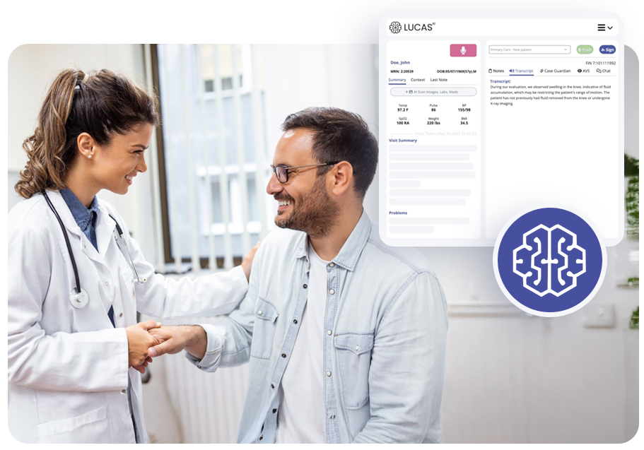 Trained on the nuances of family medicine and value-based care, Lucas AI captures complete documentation, V28 Capture, Optimization for HCC capture, and quality metrics directly into every encounter.